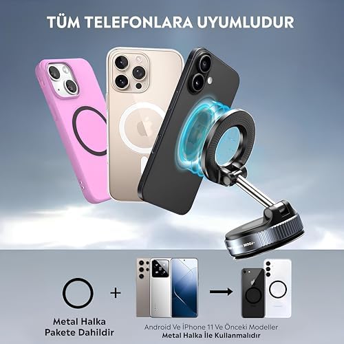 Güçlü vakum özelliği ve magnetik yapısıyla cihazınızı sağlam bir şekilde tutarken, modern ve ergonomik tasarımıyla dikkat çeker. Küçük ve taşınabilir yapısı sayesinde masanızda, aracınızda veya farklı yüzeylerde rahatça kullanabilirsiniz. Üstelik katlanabilir mekanizması sayesinde yer kaplamaz ve her an yanınızda taşıyabilirsiniz. Çift katmanlı N52 Neodimyum mıknatısları sayesinde cihazınızı sıkıca kavrar ve stabil bir kullanım sunar. Yüksek manyetik çekim gücüyle telefonunuzun düşmesini engelleyerek, güvenli bir kullanım sağlar. Vakumlu taban yapısı sayesinde pürüzsüz yüzeylere güçlü bir şekilde yapışır ve sabit kalır. Çinko alaşımlı destek çubuğu ve 360 derece dönebilen başlığı sayesinde telefonunuzu istediğiniz açıda ayarlayabilirsiniz. Hem yatay hem de dikey kullanım için uygun olan bu telefon tutucu, sürüş sırasında, mutfakta yemek tariflerine bakarken veya çalışma masasında video izlerken size mükemmel bir konfor sunar. Araç içi ve Masaüstü 360 Derece Dönebilen Vakum Özellikli Magnetik Telefon Tutucu