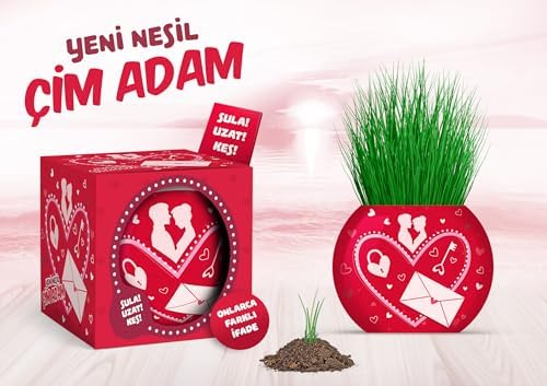 Ekim Deney Kiti Çim Adam Aşk Temalı XL Çim Adam – 6'lı Bitki Yetiştirme Seti – Romantik ve Eğlenceli Bir Hediye