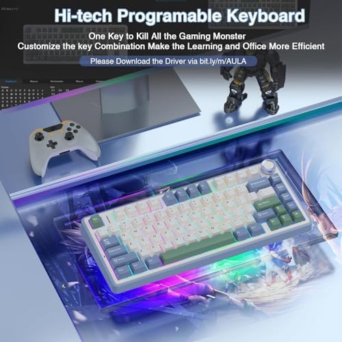 Aula F75 Mekanik RGB TKL Gray Switch Kablosuz Makrolu Hot Swap Klavye Pastel