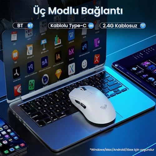Üç Modlu Bağlantı: Kablolu, 2.4G ve Bluetooth: AULA SC900PRO, Wired / 2.4G / Bluetooth olmak üzere üç farklı bağlantı seçeneğine sahiptir. Masaüstü veya dizüstü bilgisayarda kolay kullanım sağlar. Bluetooth ile kablosuz bağlantı kurmak için farenin altındaki anahtarı BT moduna getirin ve sol, orta ve sağ tuşlara 3 saniye basılı tutarak eşleştirme moduna geçin. 2.4G bağlantı için alıcıyı takın ve gerektiğinde zorunlu eşleştirme yöntemi ile bağlantıyı sağlayabilirsiniz. Hızlı ve Hassas Takip ile 8KHz Polling Rate: SC900PRO, 8KHz polling rate ve düşük gecikme özelliği ile fare hareketlerinizi anında ekrana yansıtır. Bu sayede en hassas ve hızlı hareketlerde bile tam kontrol sağlarsınız. 26000DPI sensörü ve altı farklı DPI seviyesi sayesinde oyun tarzınıza uygun hassasiyeti kolayca ayarlayabilirsiniz. Ergonomik ve Hafif Tasarım: Yaklaşık 62 gram ağırlığı ile SC900PRO, uzun süreli kullanımda bile el ve bilek yorgunluğunu azaltır. Sağ el ergonomisine uygun tasarımı, palm, claw ve fingertip grip türlerine rahatlıkla uyum sağlar. Yumuşak ve kaymayı önleyici kaplamasıyla maksimum konfor sunar. Uzun Ömürlü ve Kolay Şarj Edilebilen Pil: SC900PRO, 400mAh çıkarılabilir lityum pil ile kesintisiz oyun imkanı sunar. Bir pili şarj ederken diğerini kullanarak oyununuza ara vermeden devam edebilirsiniz. USB-C ile güvenli ve hızlı şarj mümkündür. TTC Optik Mikro Anahtarlar ile Anında Tepki: TTC optik mikro anahtarlar, tıklamaların anında algılanmasını sağlayarak gecikmeyi minimuma indirir. Bu, özellikle hızlı refleks gerektiren oyunlarda kritik bir avantaj sağlar. DPI Gösterge Işığı ve Renkli Geri Bildirim: Fare altındaki DPI tuşuna basarak farklı DPI seviyelerini seçebilir ve renkli göstergeler sayesinde aktif DPI ayarını kolayca takip edebilirsiniz. Aula SC900 Pro PAW3395 Sensör 26000 DPI 8000Hz Kablolu ve Kablosuz Gaming Oyuncu Mouse Beyaz