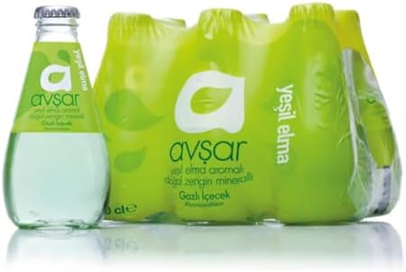 Yeşil elma aroması içerir Altı adet iki yüz mililitre şişe içerir TSE standartlarında üretilmiştir Avşar Yeşil Elma Aromalı Maden Suyu 200 ml 6'lı