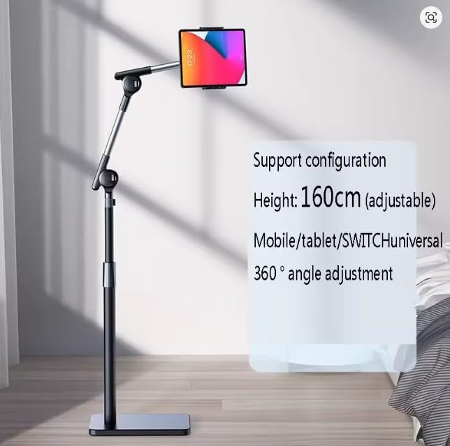 Ayarlanabilir Tablet Standı, 160cm Yükseklik, 360° Dönebilen, Evrensel Mobil Telefon ve Tablet Tutucu, Metal Zemin Standı, Masaüstü Çalışma için