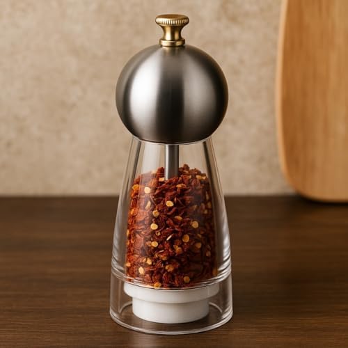 Baharat Öğütücü – 17,5 cm Şeffaf Akrilik ve Metal Başlıklı – Tuz ve Karabiber Değirmeni