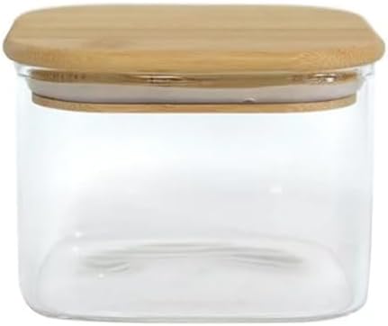 Bambu Kapaklı 380ml Cam Baharat Kavanozları, Hava Geçirmez Kare Borosilikat Baharat Kapları, Baharat Tuz Şeker Makarna Bakliyat için Boş Kavanoz