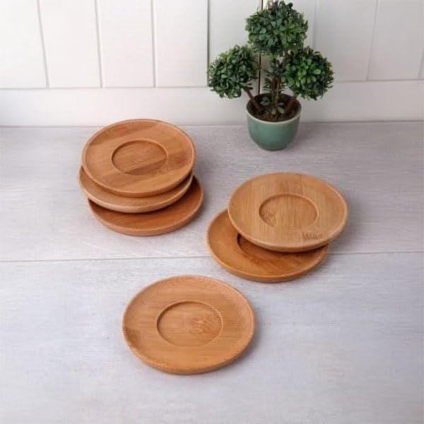 Bambu Antibakteriyel Şık Özel Üretim Ergonomik Yapı Bambu Yuvarlak Çay Tabağı Bardak Altlığı 6 'lı Set, Dekoratif Bambu Altlık