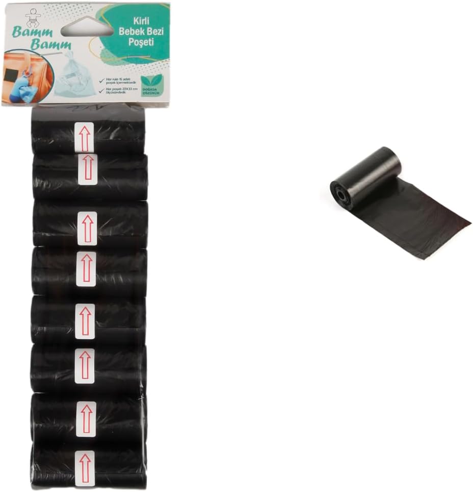 -Her rulo 15 adet poşet içerir -Çantanızda kolaylıkla taşıyabileceğiniz rulo çöp poşetleri hayatınızı kolaylaştıracak. Mağazamızdan kapsülü ile satın alarak çantanıza asabilir, poşete daha pratik ve rahat ulaşabilirsiniz. Bebeğinizin bezini değiştirdiğinizde hemen poşete koyup ağzını bağlayarak kokuyu çok rahat önleyebilirsiniz. Bamm Bamm Kirli Bebek Bezi Poşeti Çanta Boy Siyah 8 Rulo (120 Adet)