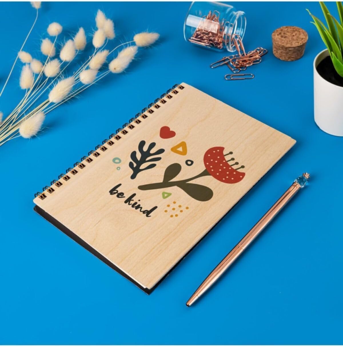 Ahşap kapaklı not defteri 12×18 cm boyutlarında Be Kind Çiçek Tasarımlı 8 Cm X 12 Cm Ölçülerinde Çizgisiz 48 Yaprak Ahşap Kapaklı Defter