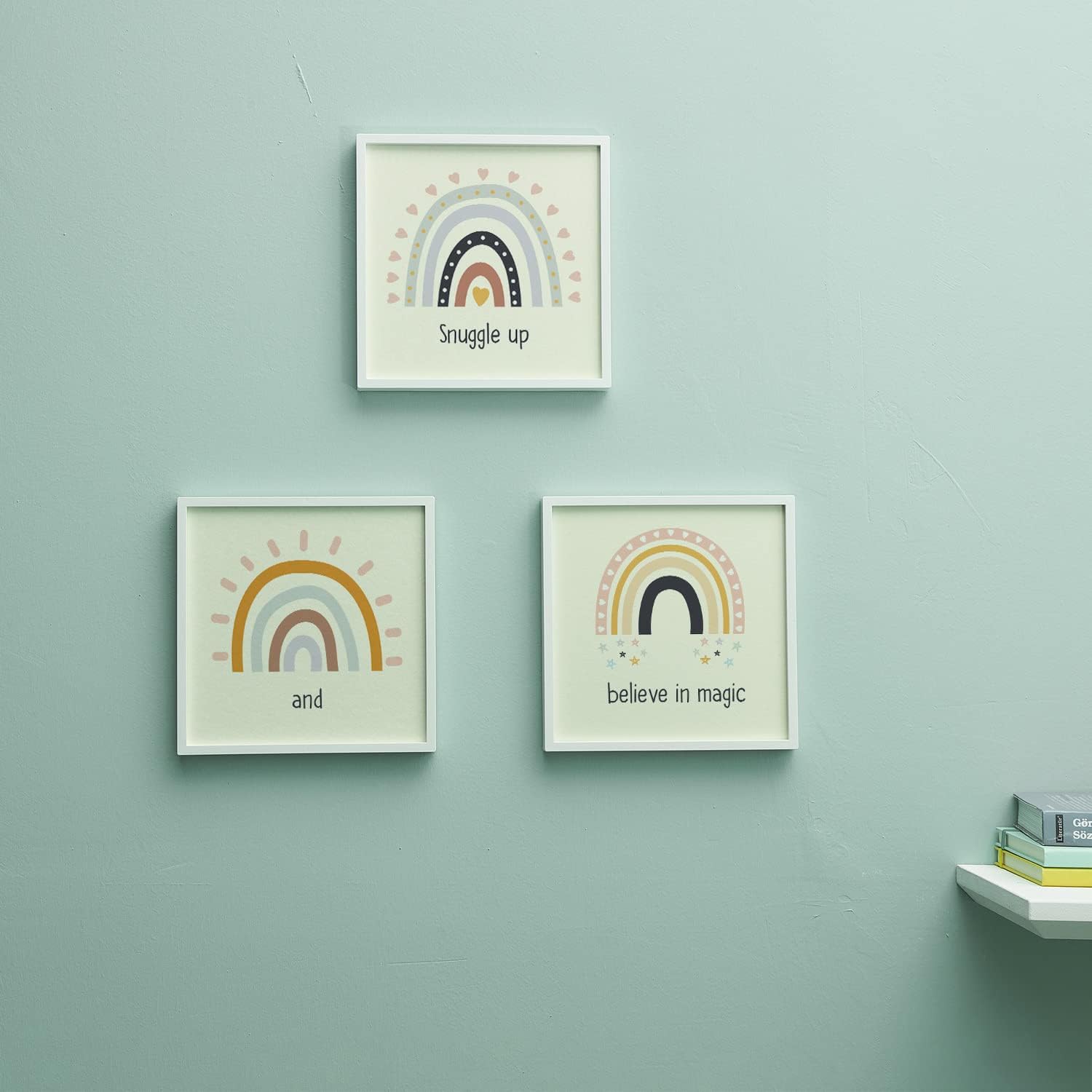 Bebek Odasına Özel Minimal Gökkuşağı Tasarımlı Çerçeve – 20×20 cm, Yeniden Kullanılabilir Yapışkanlı