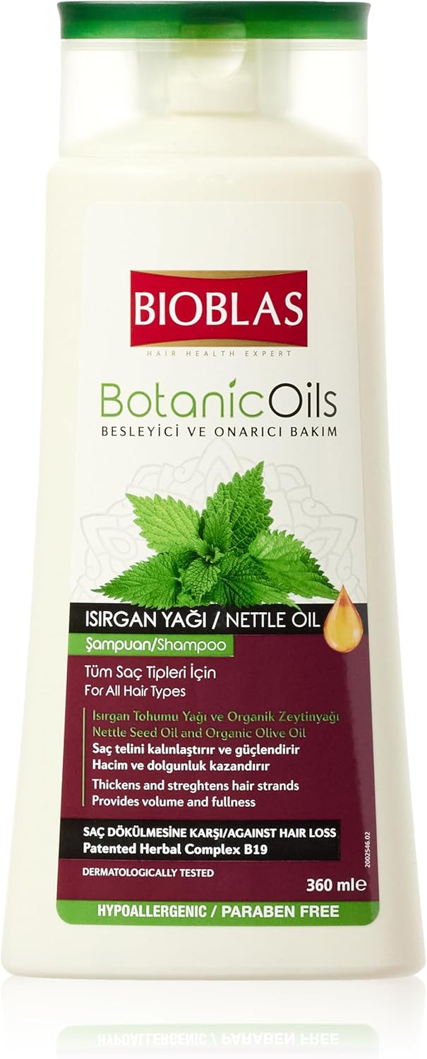İnce Telli ve Zayıf Saçlar Yıpratmayan Formüllü Güçlü Etki Hızlı Sonuç BIOBLAS Botanic Oils Saç Dökülmesine Karşı Isırgan Yağlı Şampuan (360 ml)