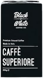 Toz Kahve Kendine özgü kavurma sıcaklığı ve süresine sahip %100 Arabica Dengeli, yoğun aroma, düşük orta asidite, hafif tatlı bitter tadı Black and White Coffee Co. Superiore Toz Kahve, 250 gr