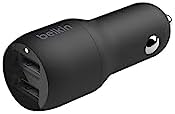 Boost Charge Çift Bağlantı Noktalı 24 W Araç Şarjı, ve telefon uyumlu, Siyah, CCB001btBK