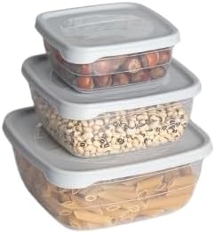 Box Kare Sızdırmaz Kapak Saklama Kabı 3'lü Set Gri