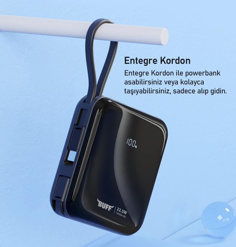 Çoklu Şarj : Taşınabilir powerbank üzerindeki dahili 1x Lightning kablosu, 1x Type-C kablosu, 1x USB ve 1x Type-C çıkışları ile aynı anda 4 farklı cihazı şarj etmenize olanak tanır. Batarya : 10.000 mAh Kapasite, Lithium Polimer, Kısa Devre Koruması Entegre Kordon : Entegre Kordon ile powerbank asabilirsiniz veya kolayca taşıyabilirsiniz, sadece alıp gidin. Hızlı şarj üç saatte tam şarj : 18W hızlı şarj gücünü destekler, kendi kendine şarj süresini büyük ölçüde azaltır. BP14 10000 mAh Dijital Ekranlı Dahili Kablolu Powerbank