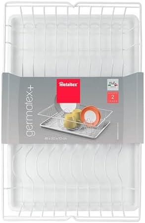 Damlama tepsisi ile Beyaz LDPE plastikleştirilmiş tel Boyutlar: 48 x 30 x 10 cm Temizlemesi kolay BULAŞIKLIK süzgeci 'GERMATEX' Tepsili, Beyaz, Standart