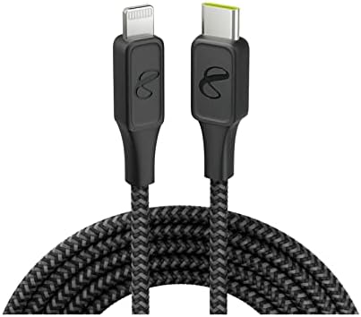 20W'a kadar PD 3.0 hızlı şarjı destekler Geri Dönüştürülmüş Polyester İplikten Dokunmuştur MFi sertifikalı Eko Ambalaj Ve Malzemeler 1.5 metre by – InstantConnect Kablo USB-C Lightning,Siyah,1.5m by – InstantConnect Kablo USB-C Lightning,Siyah,1.5m