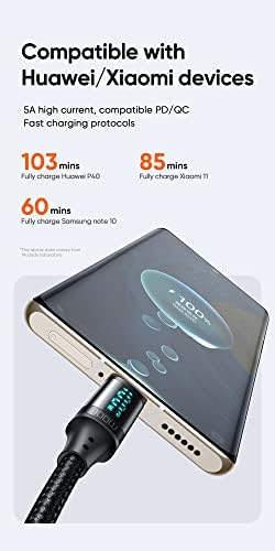 CA-1100 Type-C Kablo 100W – Dijital Watt Göstergeli Hızlı Şarj Kablosu, 5A PD QC USB-C, Laptop/Tablet/Telefon, 1.2M