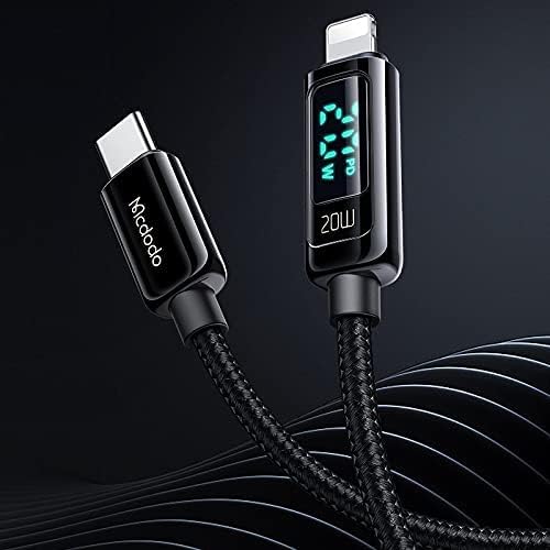 MC DODO DİJİTAL GÖSTERGELİ TYPE-C TO LİGHTNİNG PD 20W DATA-ŞARJ KABLO CA-8810 36W Pd Dijital Ekranlı Type-C To Lightning Data ve Şarj Kablosu 3A 1.2M Siyah