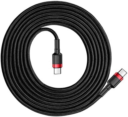 Cafule Şarj & Veri Aktarım Kablosu, 3 A, 2 m, Type C'den Type C'ye, 60 W, PD 2.0, Kırmızı – Siyah, Örgülü