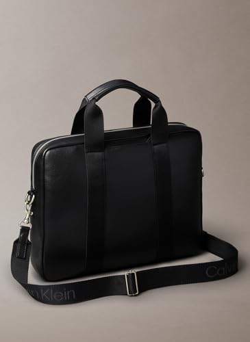 %100 Poliuretan Siyah Tek Beden Calvin Webbing Strap Laptop Bag Erkek Çanta, Siyah, Tek Beden