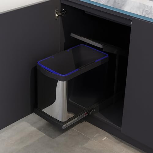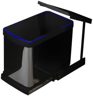 Cassone Krom, Dolap içi Teleskopik Raylı Paslanmaz Krom Çöp Kovası 24 Litre, minimum kapak genişliği 40 cm.
