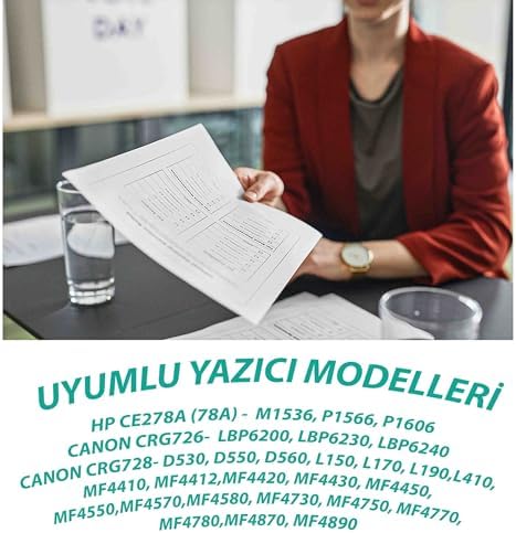 CE278A (78A) : M1536, P1566, P1606 CAN. CRG726: LBP6200, LBP6230, LBP6240 CRG728 D530, D550, D560, L150, L170, L190, L410, MF4410, MF4412, MF4420, MF4430, MF4450, MF4550, MF4570, MF4580, MF4730, MF4750, MF4770, MF4780, MF4870, MF4890 2100 Sayfa Verimlilik Sağlar. Bir Kutu İçerisinde 1x Adet Balonlu (Yüksek Verimli) Siyah Muadil Toner Kartuşu içerir. Yüksek Performans: YSY Muadil CE278A Toner Kartuşları Yüksek Kaliteli Baskı Sağlar ve Mükemmel Sonuçlar Üretir. CE278A 1536dnf 1606dn P1606dn P1566 P1560 -2100 Sayfa Verimli Muadil Toner Kartuş