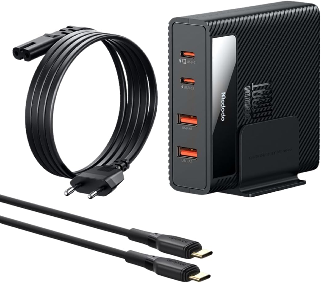 CH-1802 100W 2xUSB 2xType-C Girişli Powigan Hızlı Şarj Cihazı İstasyonu Siyah