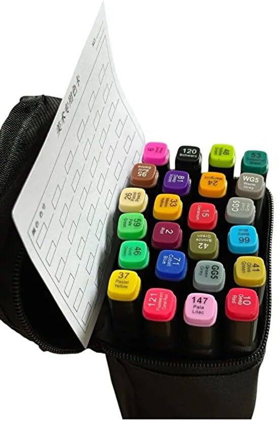 Çift Taraflı Marker Kalem Seti, Profesyonel Kutulu Keçeli Kalem Seti, Çeşitli Renklerde Boya Markerlar, Sanatçılar ve Tasarımcılar İçin İdeal (12 Parça)