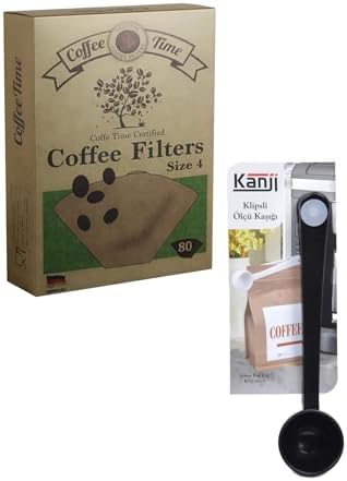 Coffee Time Filtre Kahve Kağıdı 1/4 4 Numara 80'li Paket + Klipsli Çay Kahve Ölçü Kaşığı – Siyah
