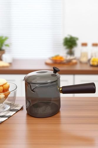 Çok Amaçlı Dayanıklı Cam Cezve & Sosluk 550 ml – Ahşap Saplı Modern Tasarım