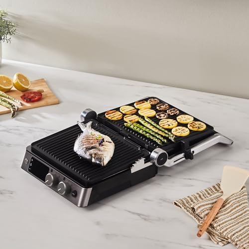 Ayrı olarak kontrol edilebilen ve farklı sıcaklıklara ayarlanabilen alt ve üst plakalar 2000 watt güç Max 230 derece sıcaklık COMPACT STEEL INOX 2008 IZGARA VE TOST MAKİNESİ COMPACT STEEL INOX 2008 IZGARA VE TOST MAKİNESİ