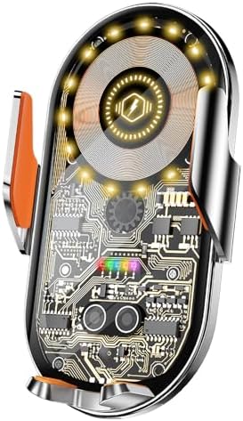 Cyberpunk Kablosuz Araç Şarj Cihazı Montajı, 15 W Hızlı Şarj, Araba Havalandırma için Otomatik Sıkıştırmalı Telefon Montajı, iPhone15/14/13/12/11/X/8 Serisi/ Galaxy Telefonları için