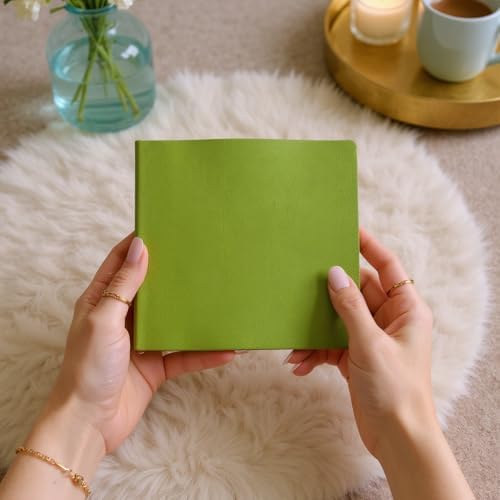 Defter, Çizgisiz Not Defteri – PU Deri Not Defteri – 16,5×16,5 cm, 96 Yaprak (192 Sayfa), 90 gr Ivory Kağıt, Esnek Kapak, Ofis ve Kırtasiye (Fıstık Yeşili)