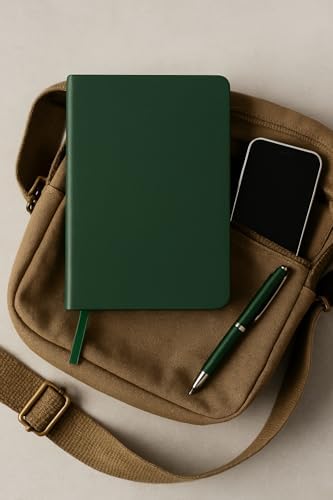 Defter, Noktalı Defter, Termo Deri Kapaklı Noktalı Defter, 128 Yaprak A5 Defter, Ofis ve Kırtasiye, Plan, Notebook (Yeşil)