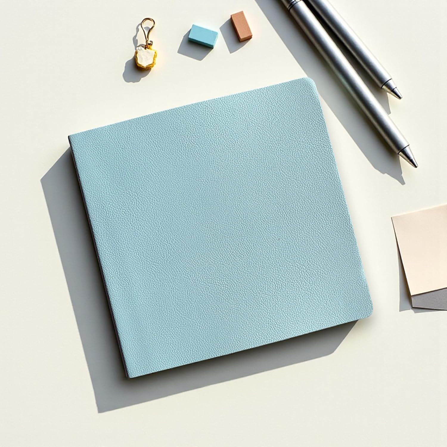 Defter, Noktalı Not Defteri – PU Deri Not Defteri – 16,5×16,5 cm, 96 Yaprak (192 Sayfa), 90 gr Ivory Kağıt, Esnek Kapak, Ofis ve Kırtasiye (Buz Mavi)
