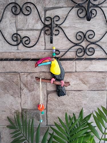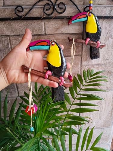 EL YAPIMI TASARIM: Her bir tukan kuşu figürü özenle el yapımı olarak üretilmiş, canlı renklerle boyanmış dekoratif duvar süsüdür SET İÇERİĞİ: Paket içeriğinde 1 adet renkli tukan kuşu figürü bulunmakta, RENK DETAYLARI: Siyah gövde, sarı göğüs ve turkuaz-pembe-turuncu renkli gaga detaylarıyla göz alıcı bir görünüme sahiptir BONCUK SÜSLEMELİ: Her bir tukan figürünün altında renkli boncuklarla süslenmiş ip sarkıtlar bulunmaktadır BOYUT ÖZELLİKLERİ: Her bir tukan figürü yaklaşık 16 cm uzunluğunda olup, duvar dekorasyonu için ideal boyuttadır Dekoratif Kuşu Duvar Süsü, El Yapımı, Renkli Boncuklu 1 adet