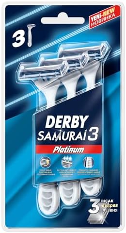 Hassas Ve Güvenli Tıraş Ergonomik Ve Rahat Kavrama Uzun Ömürlü Ve Yüksek Kaliteli Derby Samurai 3 Platinum 3'Lü Blister