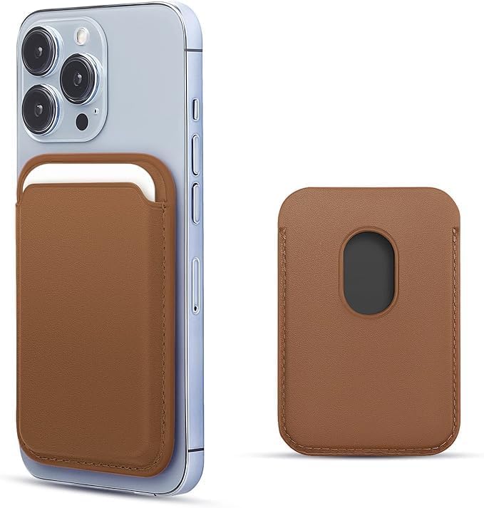 [Deri Manyetik Cüzdan] Mag-safe For Uyumlu Deri Mıktanıslı Mikro Dokuma Kartlık (Kahverengi)-10%