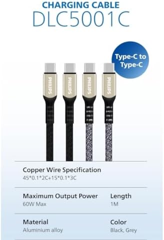 DLC5001 USB-C Şarj ve Data Kablosu, 60W, Hızlı Şarj, 3A Yüksek Akım, 1 Metre, Dayanıklı Örgü Kablo (Type-C Type-C, Siyah)