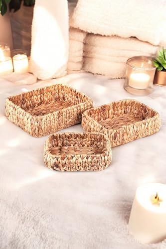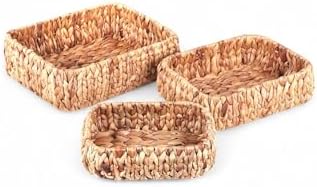 Doğal El Yapımı, Kare Bombeli Düzenleyici 3'lü Hasır Sepet – 32cm-28cm-24cm 3 Boy Set