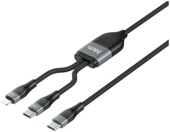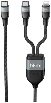 Type-C to Lightning+Type-C kablo 1.2m Uzunluk 100 Watt Type-C Çıkış 30 Watt Lightning Çıkış Dayanıklı örgü kablo DUO POWER 100W Çift Uçlu, Type-C to Lightning + Type-C Şarj Kablosu, Örgü Tasarım, 1.2 metre, Siyah