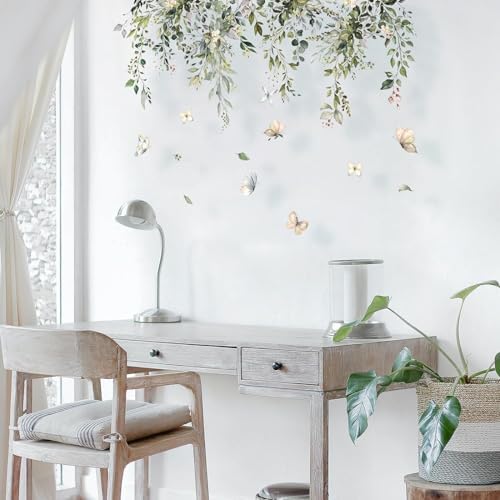 Duvar Çıkartması, 2 Adet Yeşil Bitki Duvar Çıkartması, 30 x 90 cm Kelebek Duvar Kağıdı, Çocuk Odası Bebek Odası Oturma Odası Ofis ve Sınıflar İçin Yapıştır Çıkar Duvar Dekoru