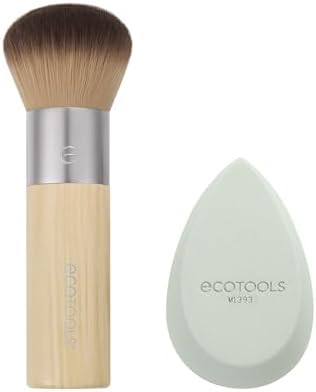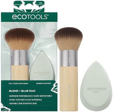 EcoTools Blend + Blur Makyaj Fırçası ve Sünger Duo, Makyaj Blender Sünger ve Fondöten Fırçası, Sıvı ve Krem Makyaj, Bulut Cildi, Çevre Dostu, Lateks İçermez, Zulüm İçermez, & Vegan, 2 Adet
