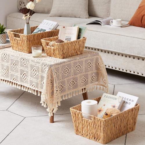 El Yapımı Hasır Dikdörtgen Dekoratif Sepet, Hasır Dikdörtgen Dekoratif Tepsi 3 Model Seçenekli (30 * 22 * 12cm) (KÜÇÜK)