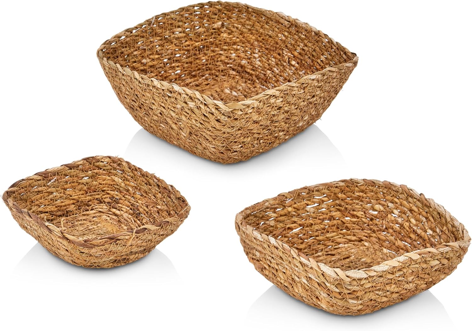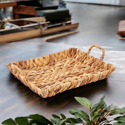 El Yapımı Su Sümbülü Hasır Kulplu Dekoratif Tepsi Büyük Boy (32cm*25cm*4cm)