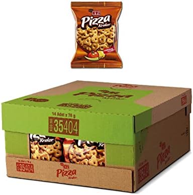 Gevrek ve ağızda dağılan yapısı Pizza dilimi şekli Baharatlı ve çeşnili tadı Eti Pizza Kraker 76 g x 14 Adet