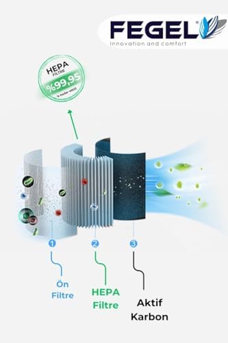 FEGEL FG-M03N Akıllı Hava Temizleyici – 3’lü Filtre,HEPA-KARBON-AROMA TERAPİ ve WiFi Kontrollü