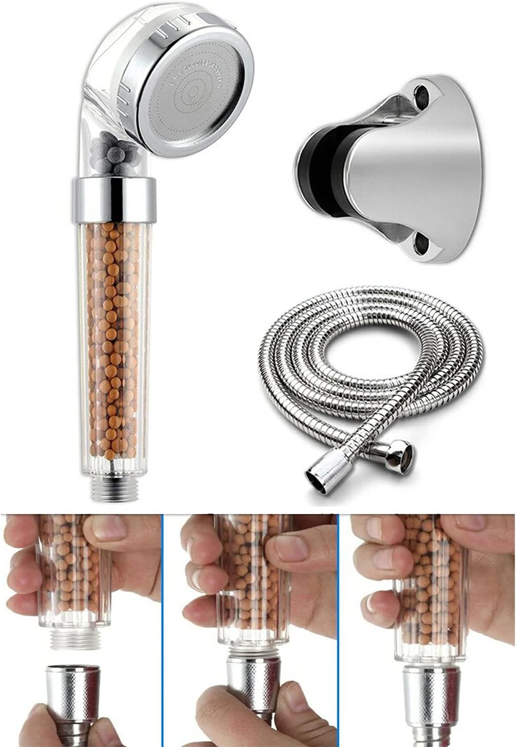 Filtreli Ve Su Tasarruflu Arıtmalı Duş Başlığı Seti – Boncuklu Başlık Hortum Ve Mafsal Seti