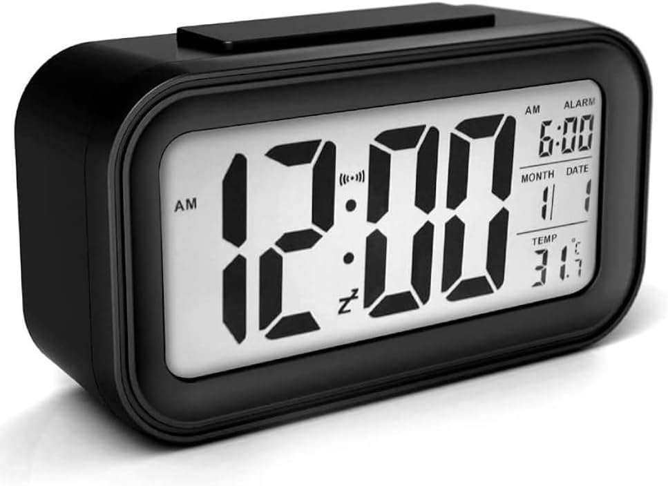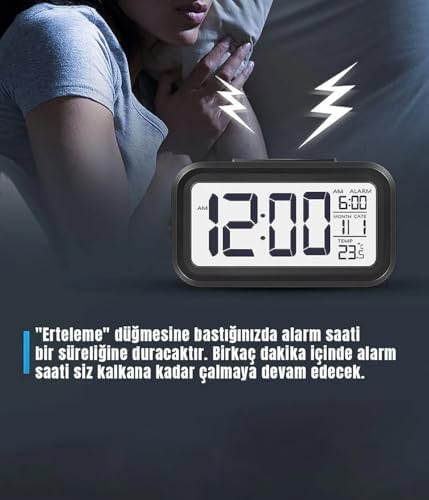 Fotoselli Işık Sensörlü Termometreli Alarmlı Dijital Masa Saati (Siyah)