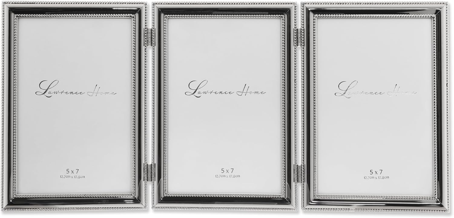 Frames Resim çerçevesi, 3 kat (dikey), metal, gümüş kaplama, zarif inci süslemeli, 12,7 x 17,8 cm