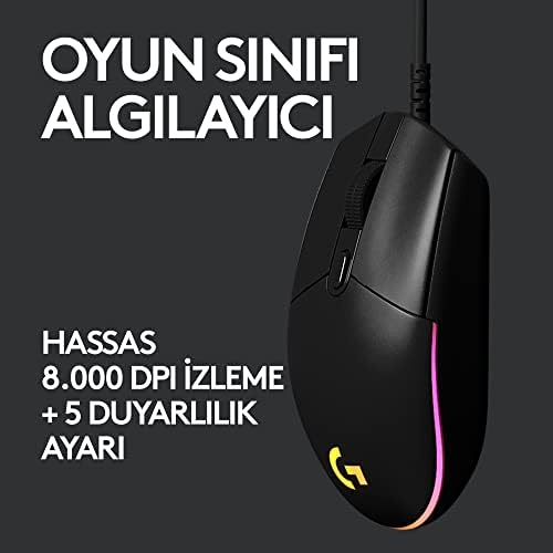 G G102 Kablolu Oyuncu Mouse, LIGHTSYNC RGB Aydınlatma, 8.000 DPI, 6 Programlanabilir Tuş, Siyah